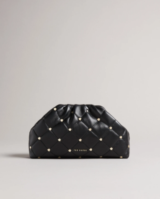 Is there a bag you always reach for? Yes, this is a clutch bag that is sure to become your new favorite accessory because of its classic look and statement style. The studded flowers elevate this bag to a whole new level, giving it a soft, quilted feel. The bag's detachable strap, on the other hand, allows you to carry it in a variety of ways. Click here to shop this handbag.